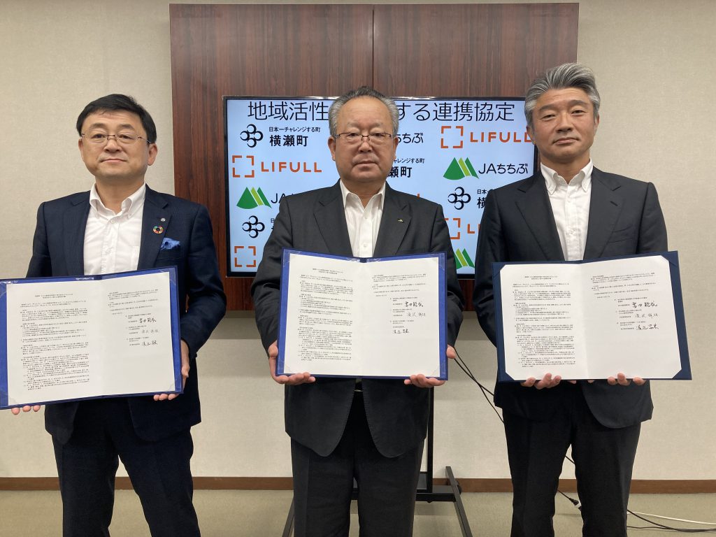 横瀬町(町長:富田能成)と、ちちぶ農業協同組合(本店:埼玉県秩父市、代表理事組合長:滝沢祥雄、以下「JAちちぶ」)、株式会社LIFULL(本社:東京都千代田区、代表取締役社長:井上高志、以下「LIFULL」)の三者は、町・地域の活性化に協力して取り組むため、地域活性化に関する連携協定を締結しました。