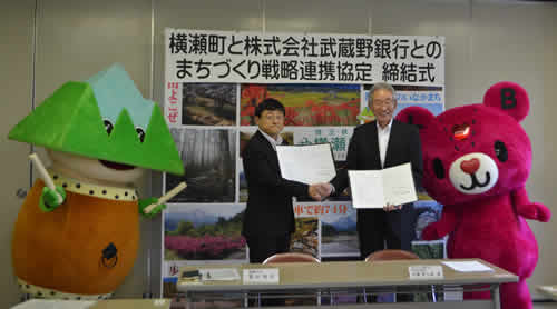 平成28年6月8日(水)、横瀬町は武蔵野銀行と産業振興・中小企業支援など15分野にわたるまちづくり戦略連携協定を締結しました。